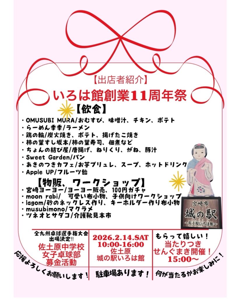 2月14日はいろは館創業11周年の記念祭をおこないます