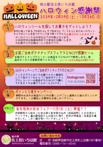 いつも城の駅佐土原いろは館をご利用いただきありがとうございます。いろは館では、10/25(土)・10/26(日)の日程で日頃の感謝を込めてイベントをおこないます。 ①お子様にお菓子のプレゼント店内に貼ってある「かぼちゃ」 […]